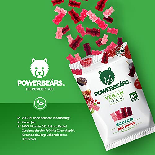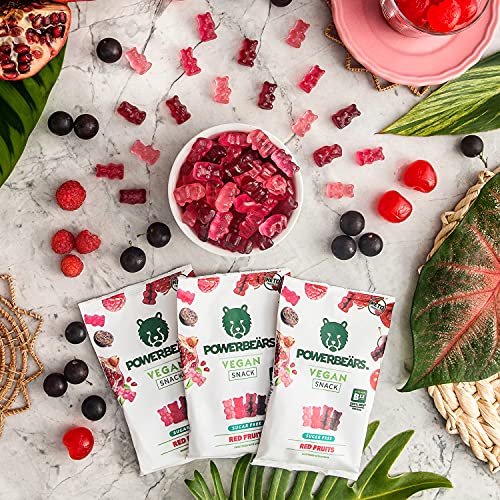 Powerbeärs Vegan Sugarfree Red Fruits | Vitamin B12 | Pomegranate, Cherry, Blackcurrant and Raspberry (8x50g)